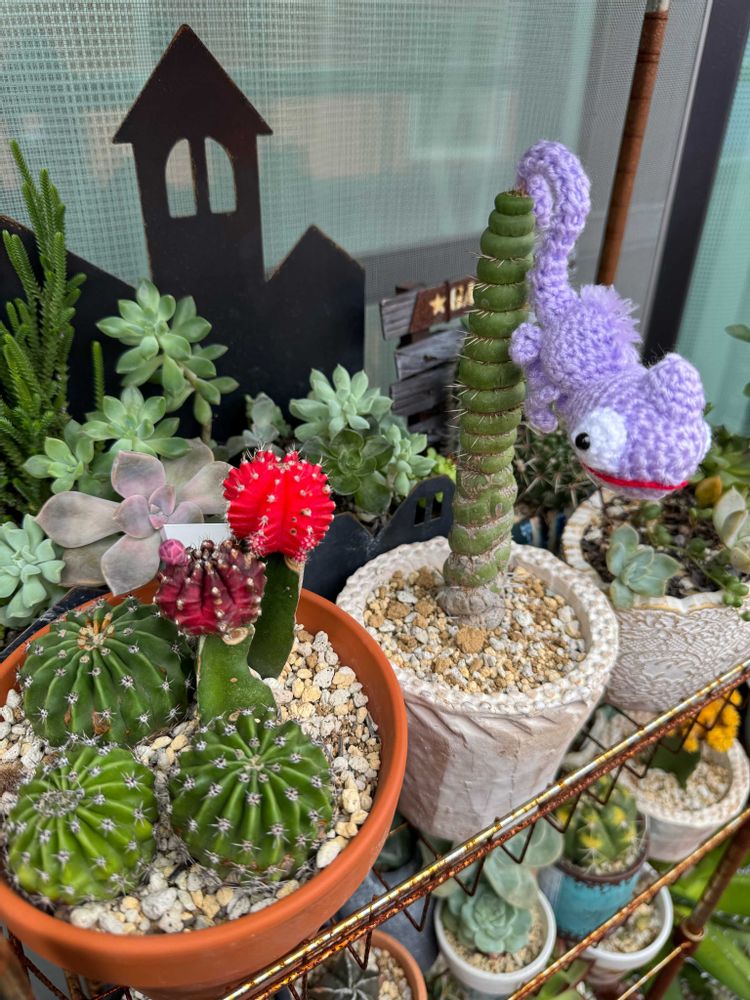 ①ジュンさんの編み編みカメレオンとサボテンたち🌵