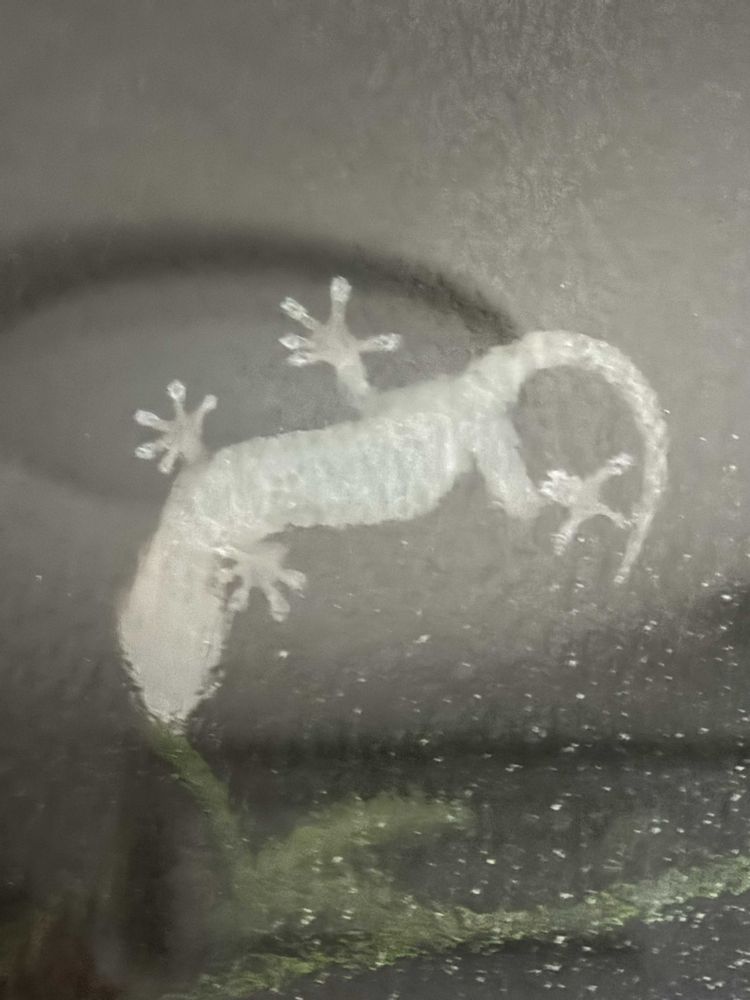 リアルヤモリさん、磨りガラスの向こう側でアートしている😌良き💓