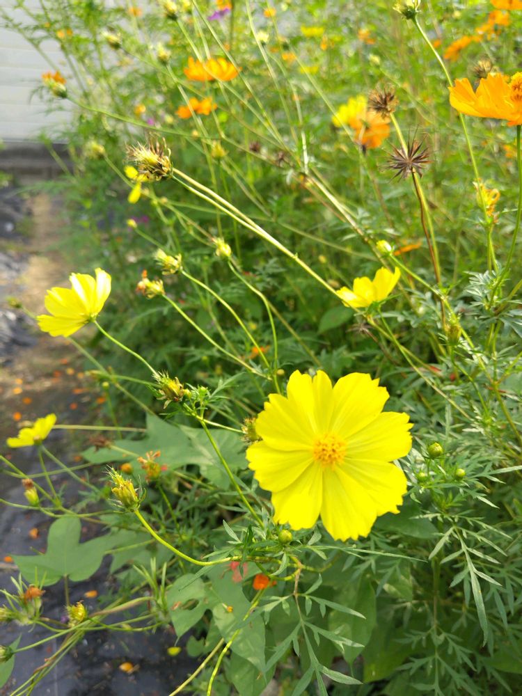 キバナコスモス🧡🧡🧡の勢力に押されながらも、懸命に咲いています😅