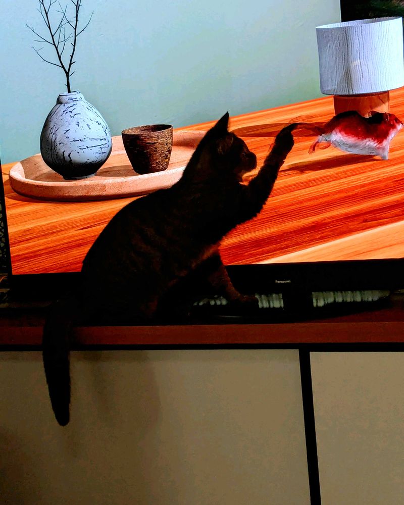 兼ねて 📺遊びしています☺️ やっぱり🐭ネズミが気になるみたいꉂ 🤭