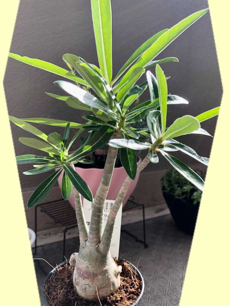 久しぶりにHSに行き何年か前から狙っていたアデニウムと出会ってしまいました。砂漠の薔薇🌹🏜️と言う名前も聞いてから虜になりお迎えしてしまいました。鉢増しして来年に向けてお花を咲かせていけたらと思ってます🌸