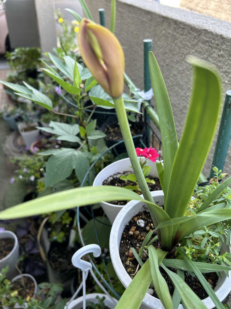 そういえば花友さんが、「アマリリスの花芽が出てきた😲」と驚いてたような……🤔