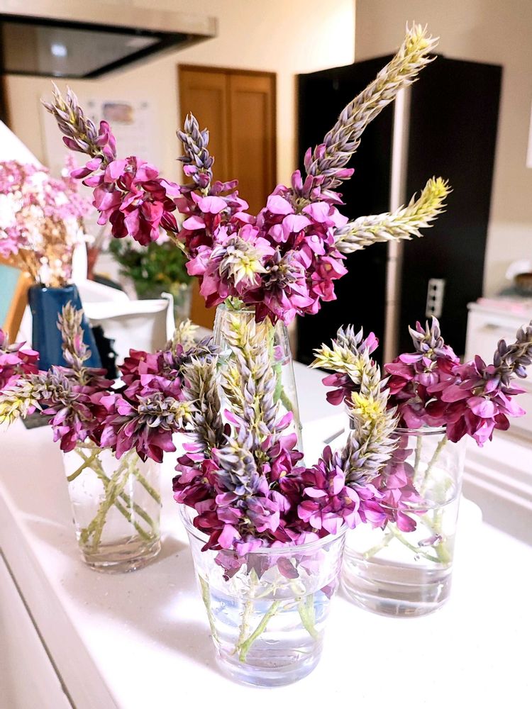 モモ(犬)の散歩わず。ちょっとぶりに堤防に行ったので、蔓延りまくってるクズがそろそろ咲くと思うんだがなー…とキョロキョロしてたら咲いてた!ので、お花だけ大量にもいできました♪