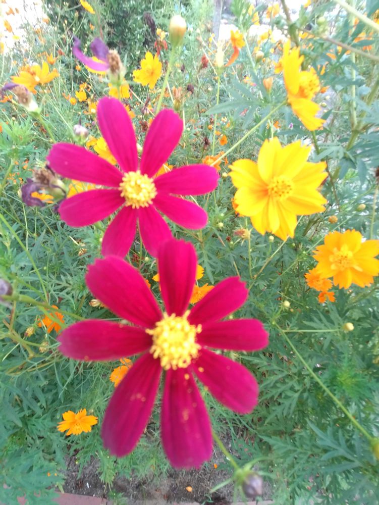 溝の方に向かって咲くので、溝から生えて来たりしてます。なので、トンボの目のような種ができたらこぼれる前に取ってちょっと後の方や別の場所に撒いてます