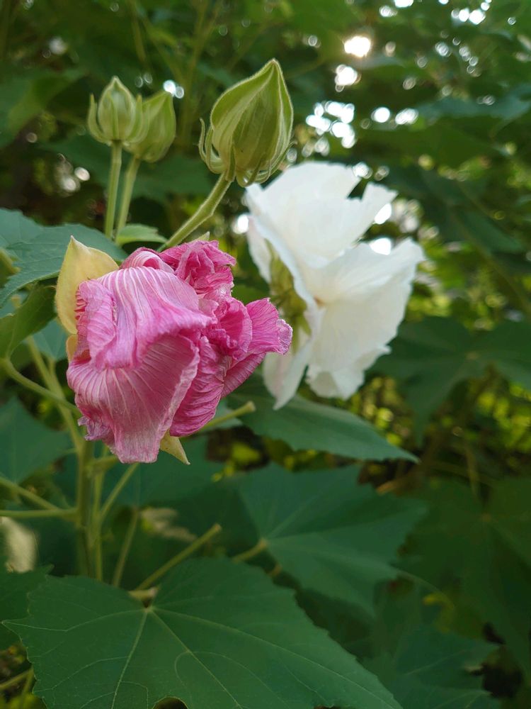 酔芙蓉を毎日のように見るのが楽しみです🤍🩷