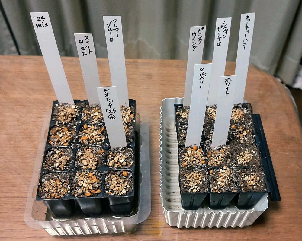 1セルに2粒ずつ蒔いて、多く発芽したら、いつもはやらない間引きをしようと思います