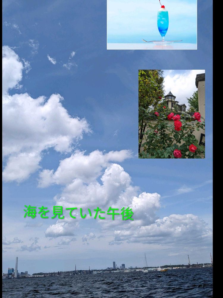 素敵なコラージュ、ソーダ水と青い空と白い雲、目をつむると貨物船が通っていきました꒰ღ˘◡˘ற꒱✯*⛴️•*¨*•.