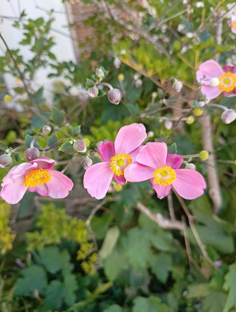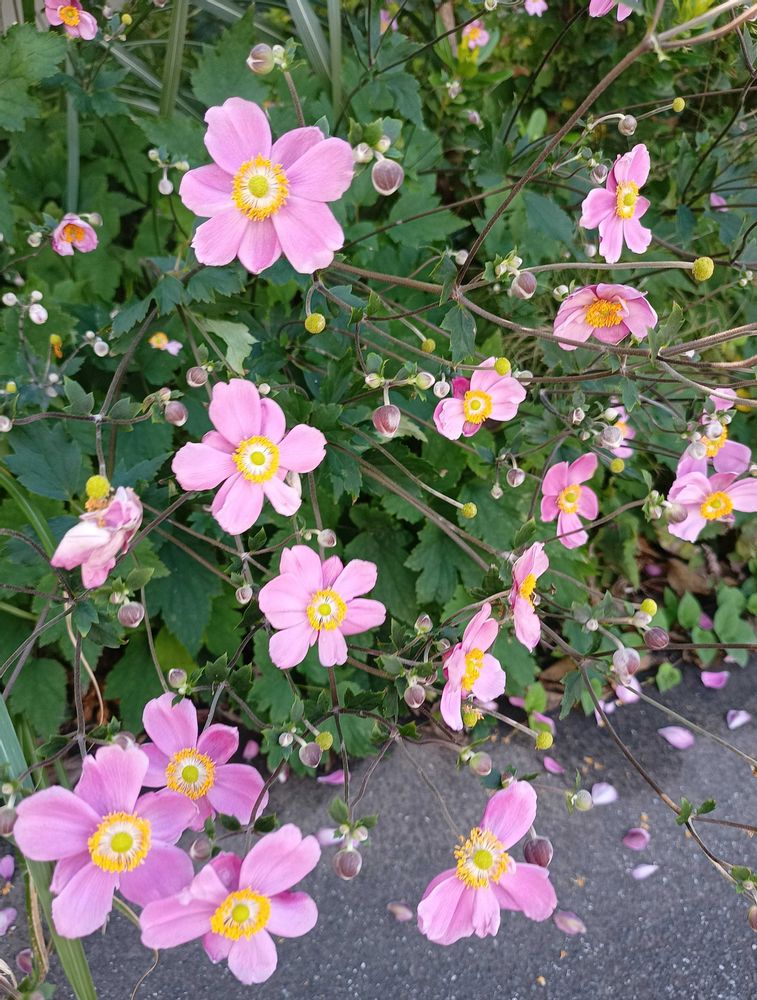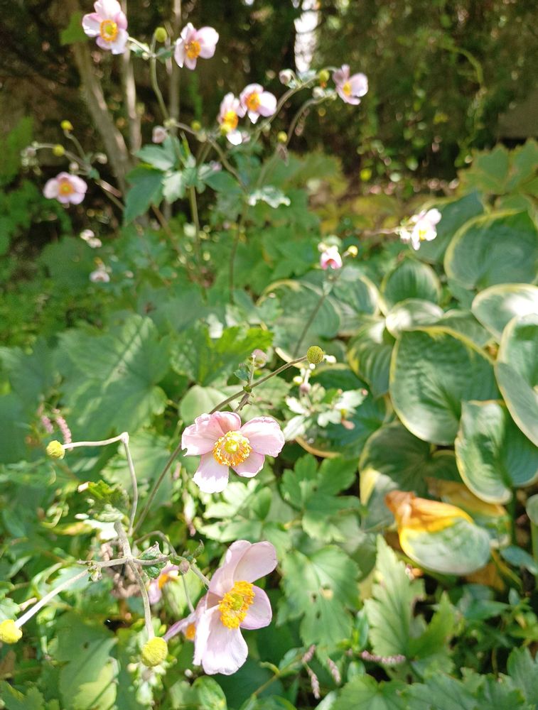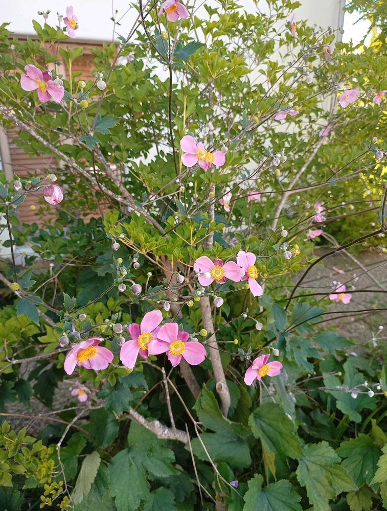 シュウメイギク〜スゴイ〜もうこんなに咲いてるんだね〜我が家は葉っぱ🌿だけ出てます〜🌿