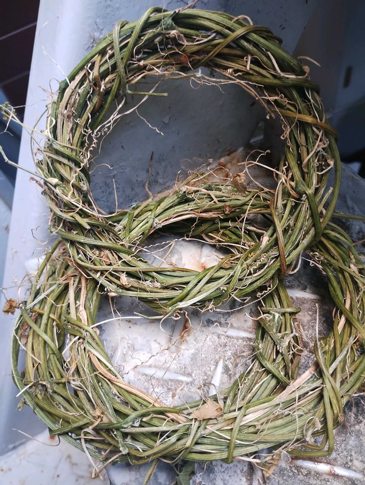 葉っぱを取ったあとツルをぐるぐる巻くとリース台が作れます(このまま乾燥させます)😊