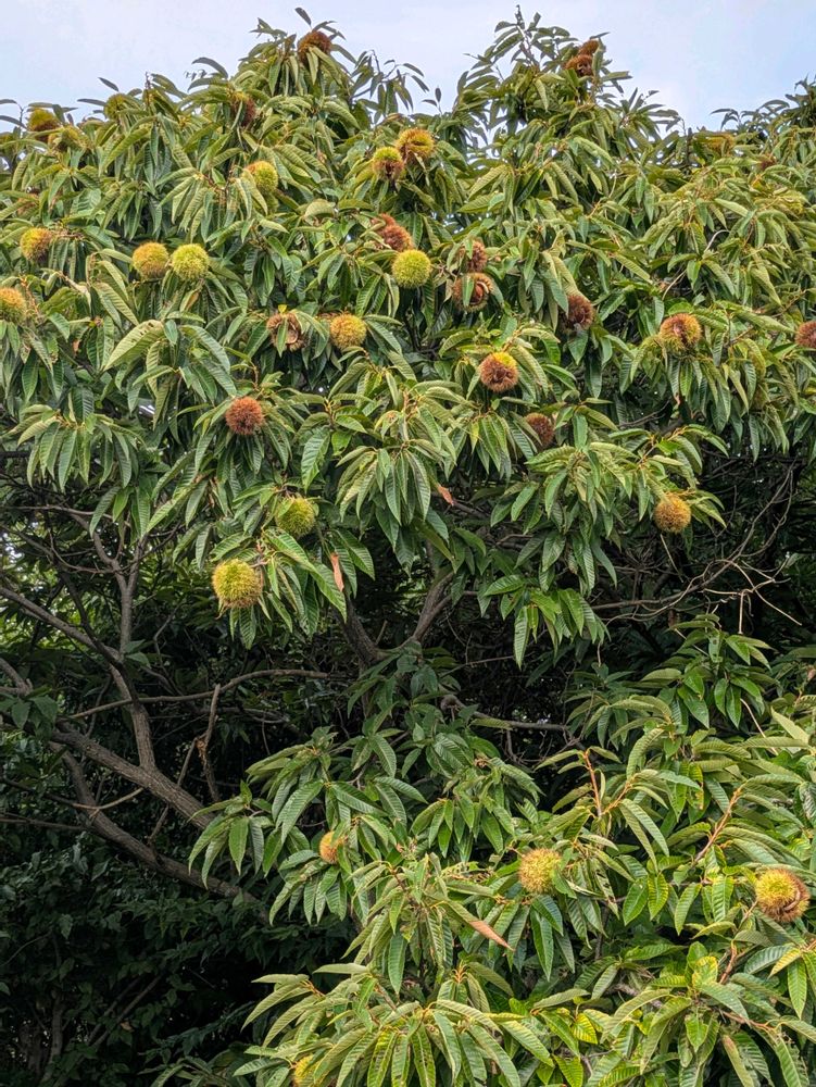 秋の味覚 栗🌰の実が一部茶色くなり弾けて中身が見えている物もありました。