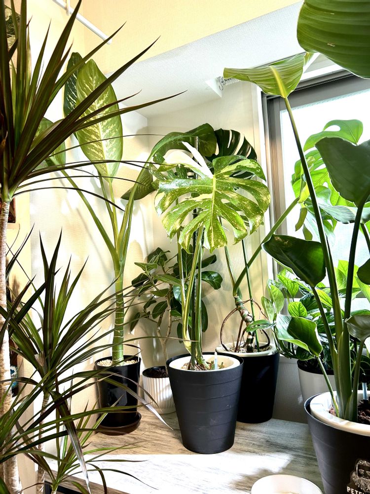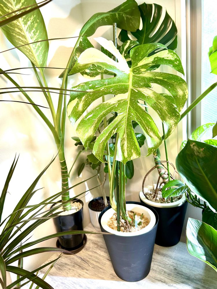 斑入りのモンステラは、どの品種も通常のモンステラよりも葉焼けしやすく、また**暗すぎると斑が消える(先祖返り)**ことがあるため、管理には特に注意が必要です。