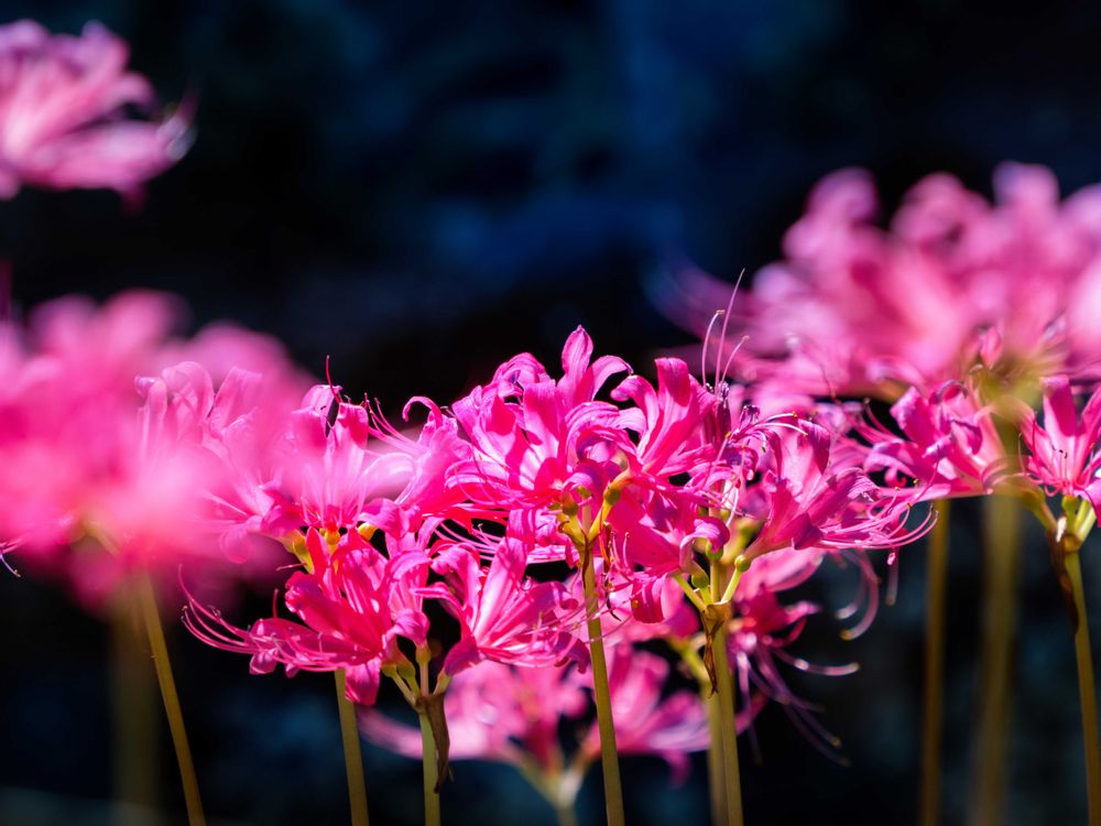 西方寺さんは、元々は真言宗の静かな寺院だったのですが、檀家が減って徐々に寂れていくことに危機感を持った今の住職さんが、知名度を上げるために山門前の斜面一体に黄色のヒガンバナを大量に植えたところ、TVや新聞で大々的に報道されて一躍有名になりました。ただ、斜面は日当たりの関係で左右対称には花が咲かず、結構苦労されているようです。遅咲きの品種と早咲きの品種を混ぜ植えして、バランスを取ろうとした結果、今では黄色一色ではなく、多種類の色の花が咲く美しい景観になっています。休日は人が多いので、行かれるのであれば、平日の朝がお勧めです。