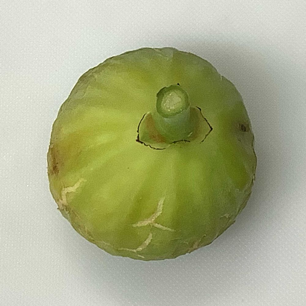 今朝、ホワイトイスキアの15個目の秋果が全体的に軟らかくなっていたので採りました 果実は20gでした 気温が下がって来たためか、果肉はこれまでのように過熟気味ではなく、皮も綺麗に剥くことができました 採るタイミングとしては少し早めだったようで、甘味は薄く酸味も感じられました 今後は果実の全体が軟らかくなってから数日経って果実が少し萎んだ頃に採って見ます