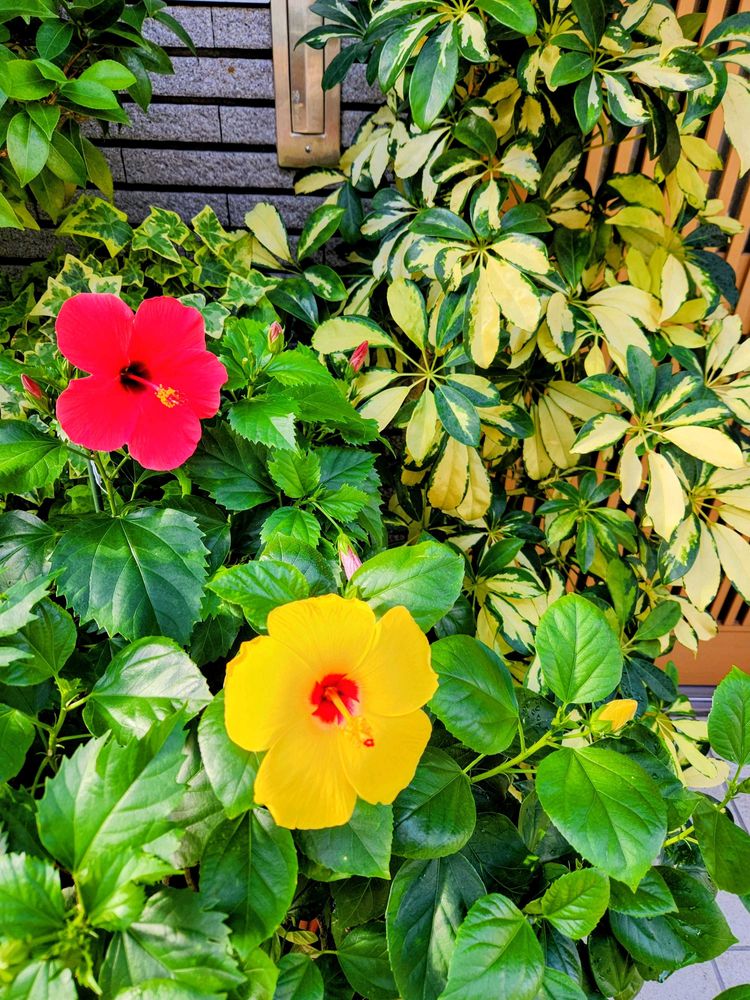 玄関アプローチ,シェフレラ,ハイビスカスの投稿画像