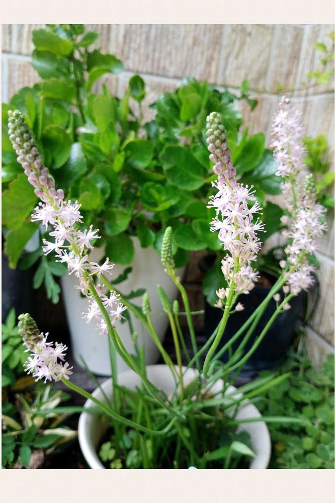 🍀高知の花友さんから頂いた球根「ツルボ(蔓穂)」どれも咲き始め、玄関🚪💮の出入りたびにしゃがみ込んで にっこり&ほっこり🤲🍀💕してます。