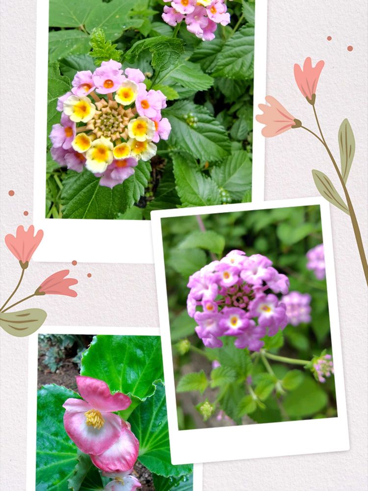 ③散歩中に見つけたランタナと我が家のこぼれ種のベゴニア🍥