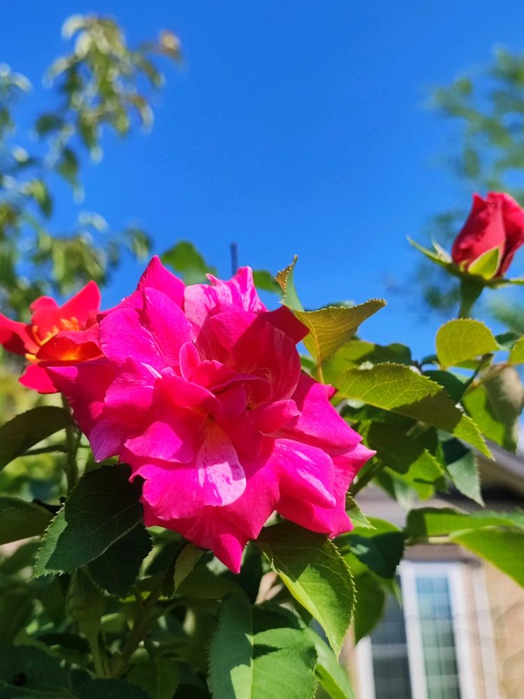 青い空にバラが映えますね🌹