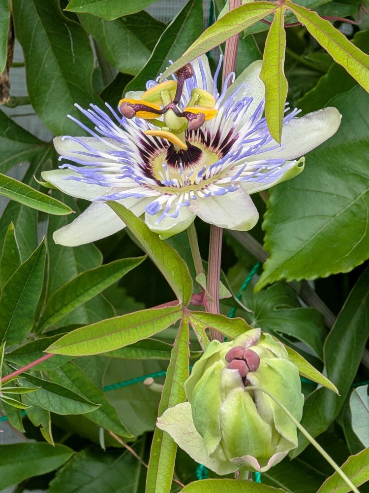 パッションフルーツとトケイソウが絡み合ってすごいよ😅