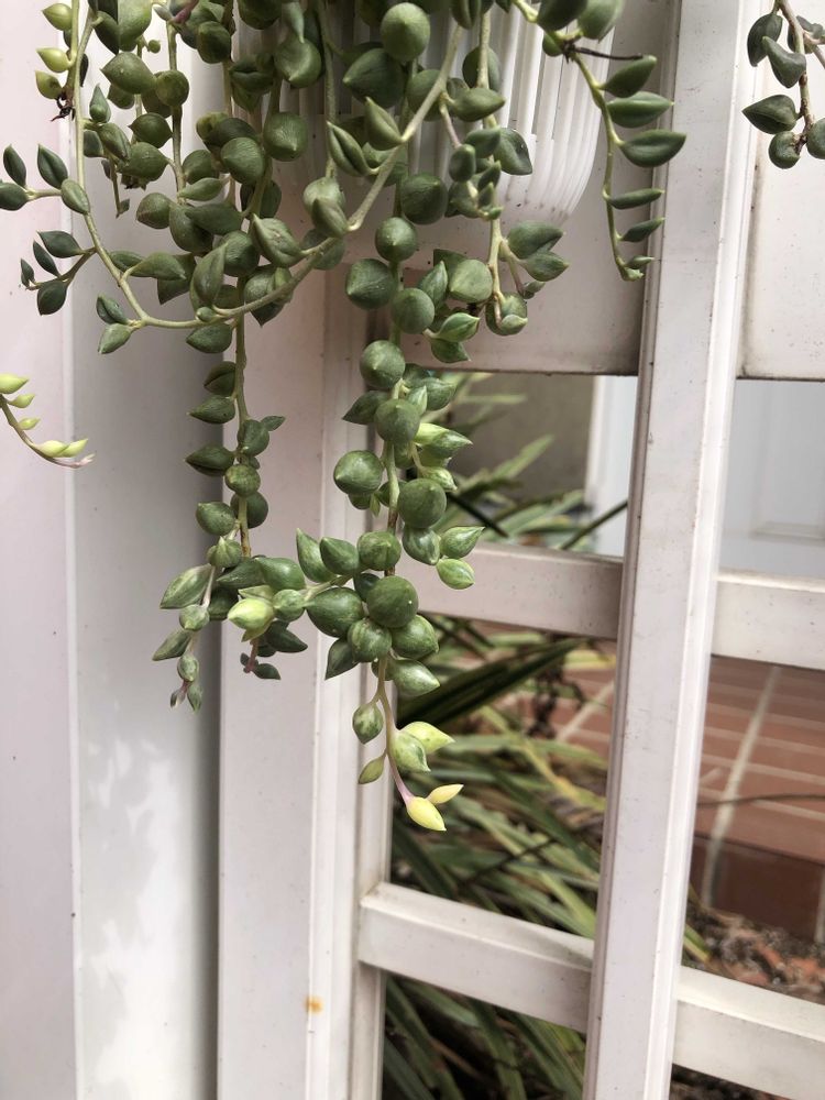 夏にあちらこちらに場所を変えて、どうにか夏越ししたネックレス系二つ。葉の色がどちらも深緑になって、ピーチネックレスと見分けがつかなかったのだけど、ようやく見分けできた!