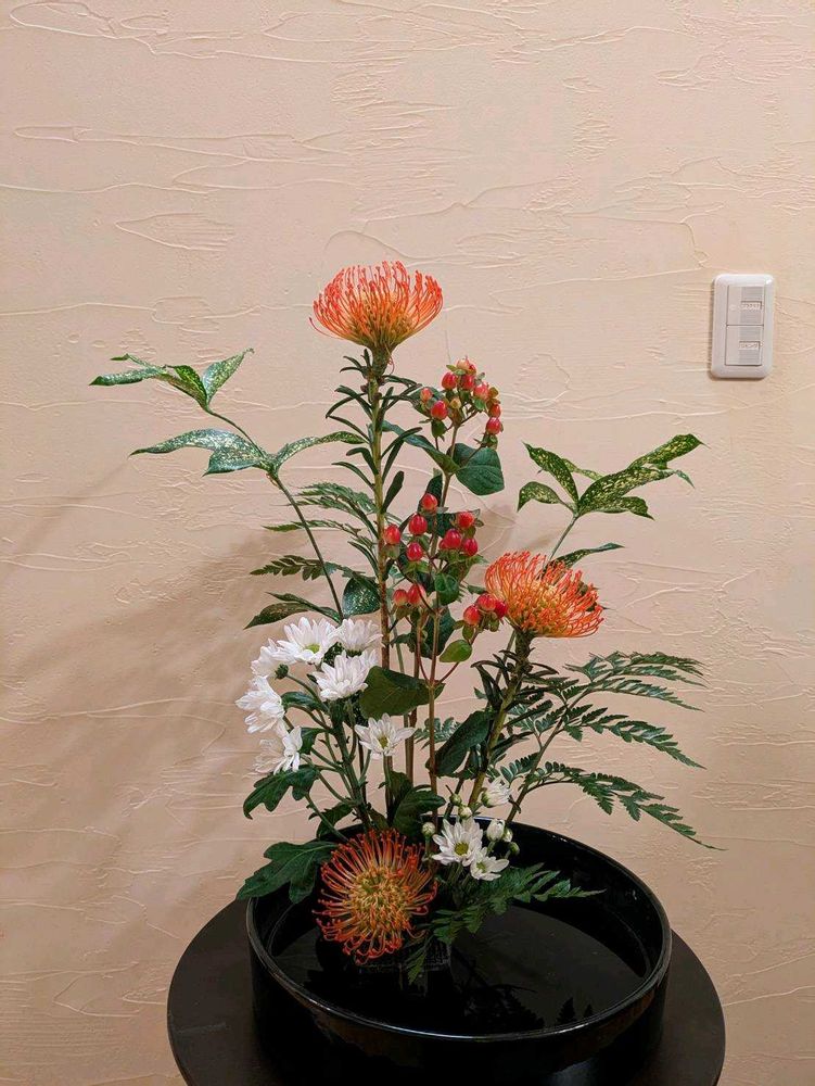 昨日この生け花をリメイクしてマンションの花壇の何の木か分かりませんが枝をカット