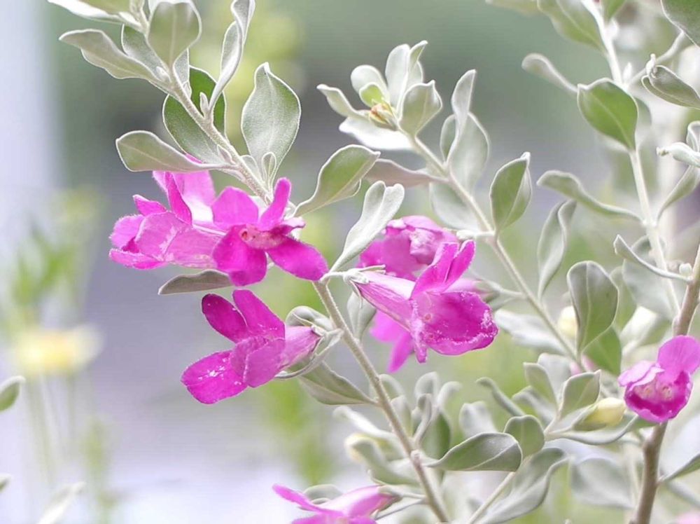 シルバーの葉に赤紫の花が映える美しい低木🌸