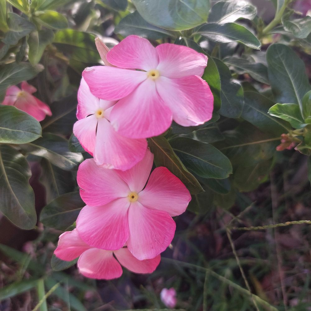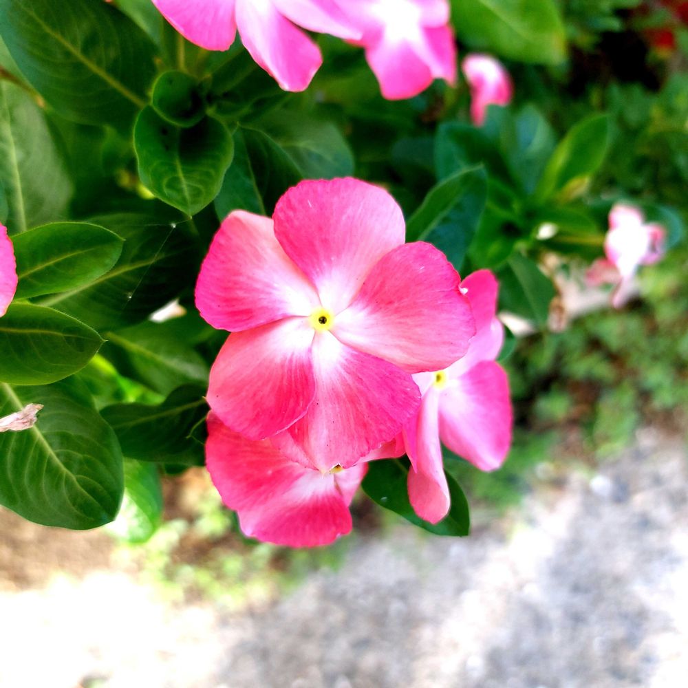 庭に咲いている、ピンクの花たち