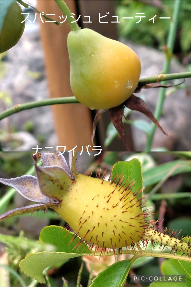 ②スパニッシュ ビューティーとナニワイバラのローズヒップ
