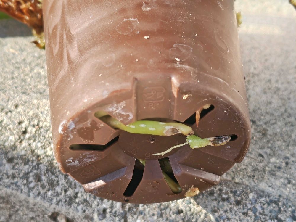 外の金魚鉢の上に置いてたら、根っこが伸びて、鉢にくっついてて…ぶちッとやっちゃった