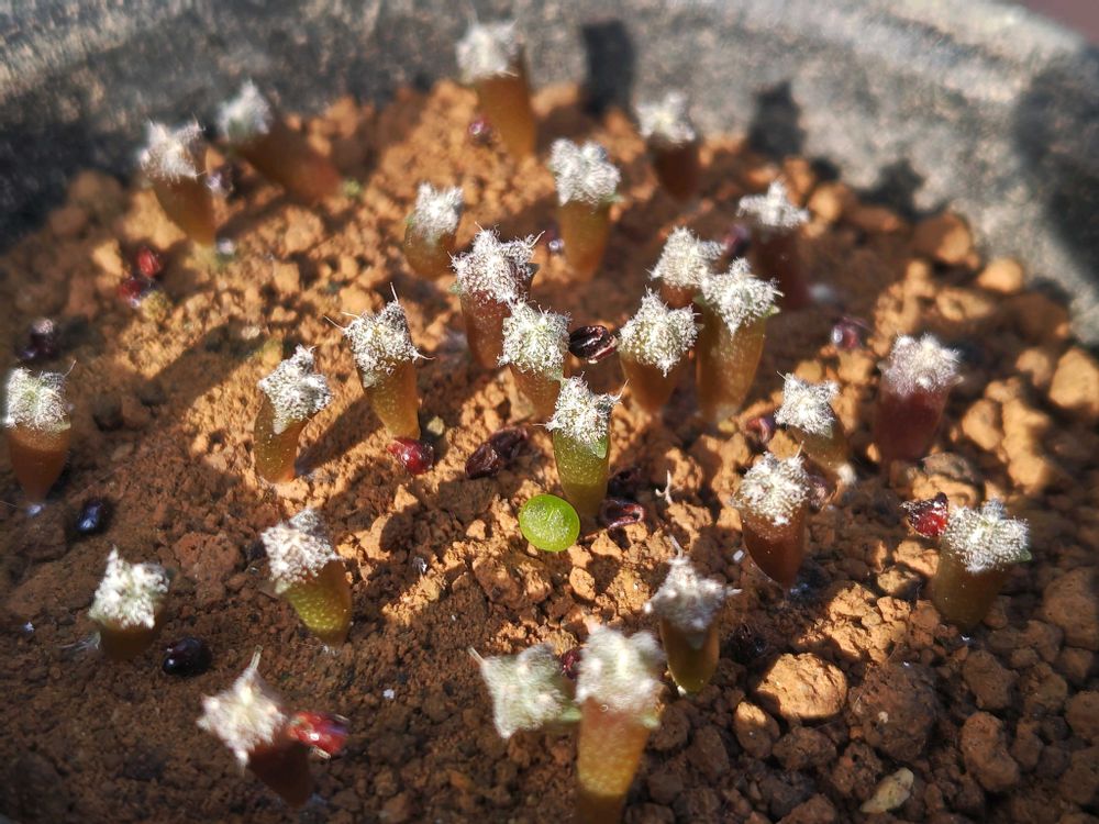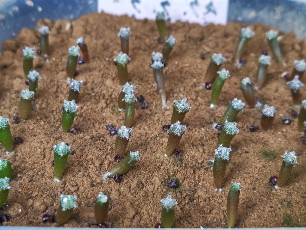 ➀②令和7年7月7日に播いた『四角鸞鳳玉』の実生っ子