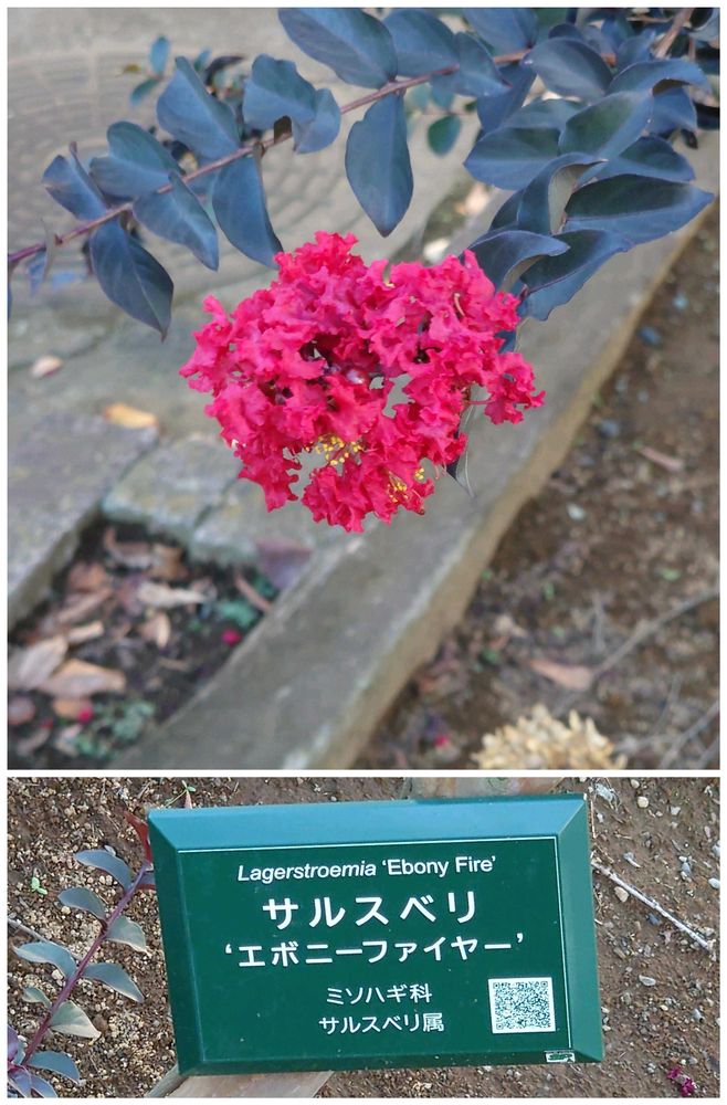 そんな日に選んだのは、真紅の花にダークグリーンの葉っぱ、エボニーファイヤーという名前のサルスベリです。どうですか、きれいな色でしょう😀 高貴な雰囲気が漂います💃(農業試験場内にて)