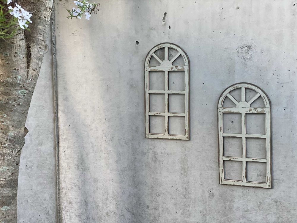 コンクリート塀にお安い木の窓枠を〜