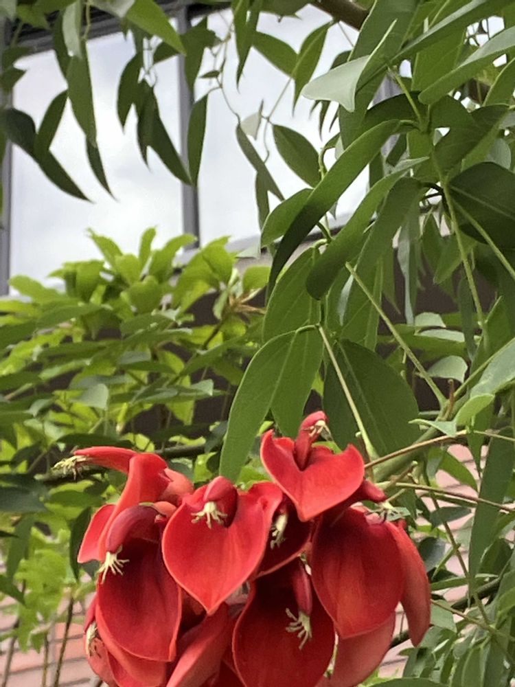 アメリカディゴ、アメリカデイゴ、マメ科の落葉低木。和名はカイコウズ(海紅豆)。風が強く揺ら揺らして写真が上手く撮れなかったです🌿