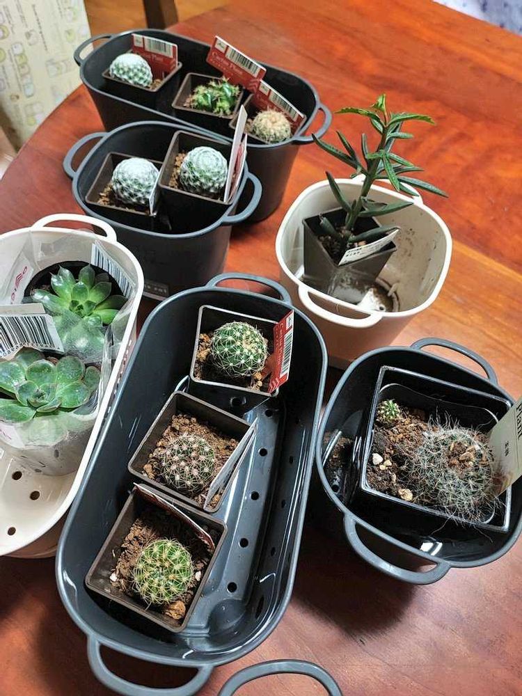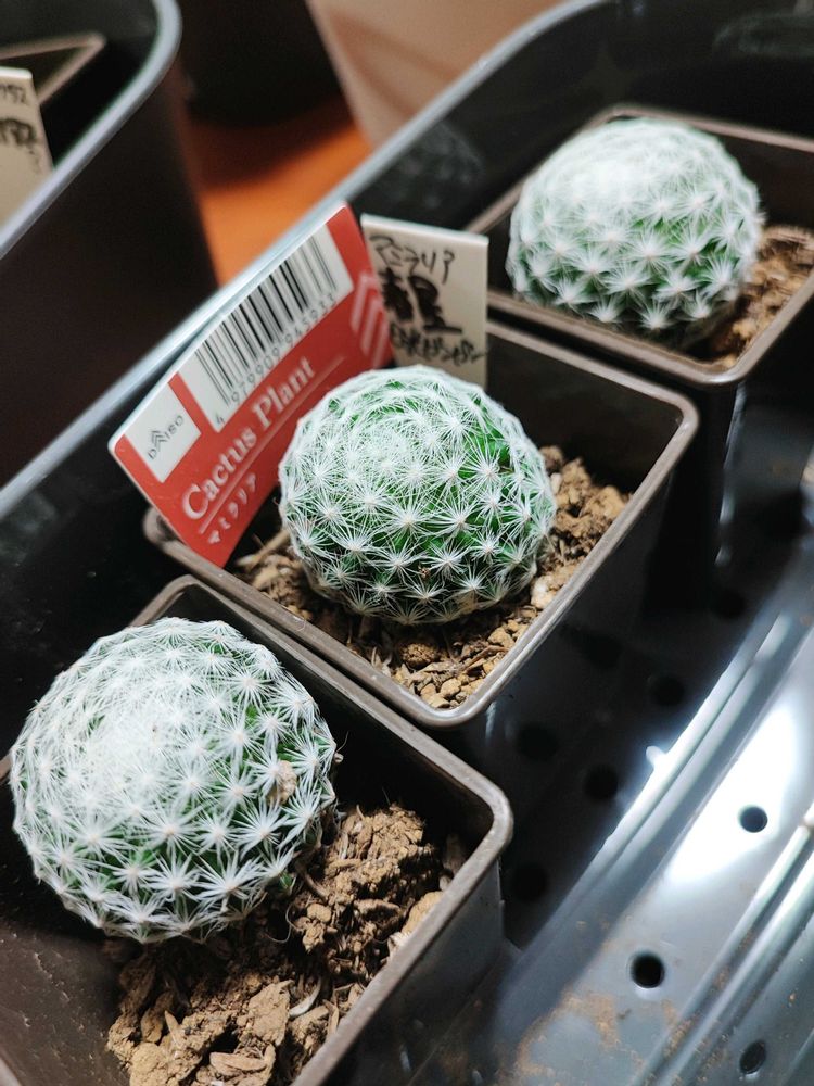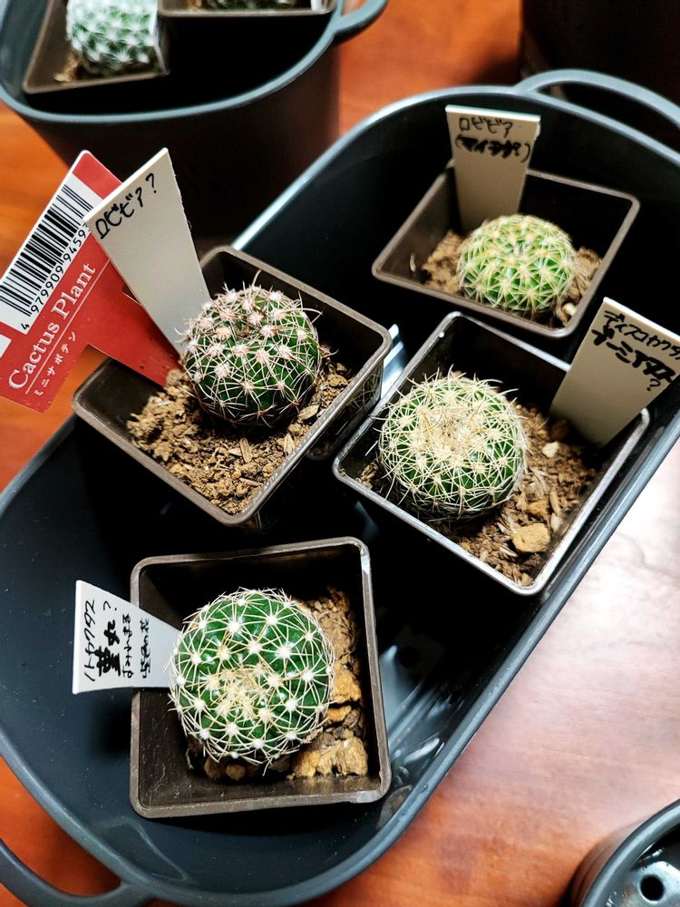 2枚目は全員ミニサボテンとして売られていた子達です。全員微妙に違うので、気になるのを全部買ってきました。Googleレンズを信じるなら、多分3つは違う種類…だと思われます()