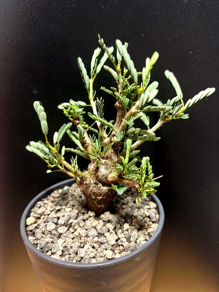 2024年7月に播種したセンナメリディオナリス。10粒播種して7粒発芽、約1年2ヶ月経過して元気なのは3株、生きてるか不明な3株、脱落1株。