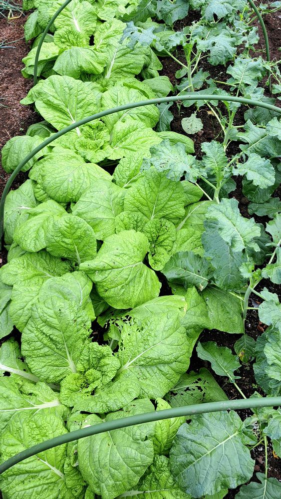 白菜やブロッコリー、けっこう綺麗に順調に生育してますね👍 少し食害痕が見えますが、ヨトウムシなどの食害ではないかも知れません。意外にナメクジとか・・