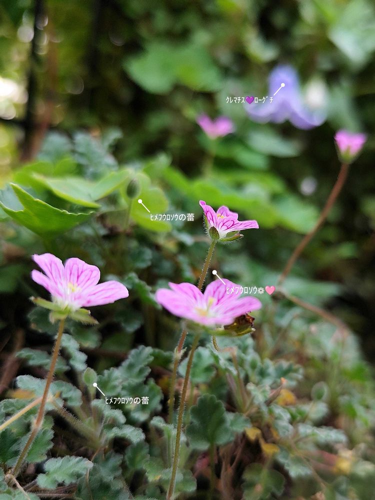ヒメフウロソウの花と蕾とクレマチスローグチ