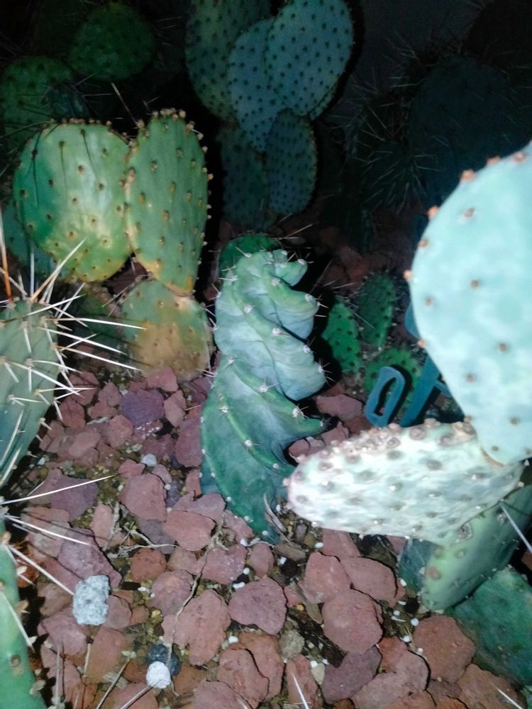 こんばんは。妻のお気に入りの柱サボテンで地植えでどこまで成長するか挑戦中です。