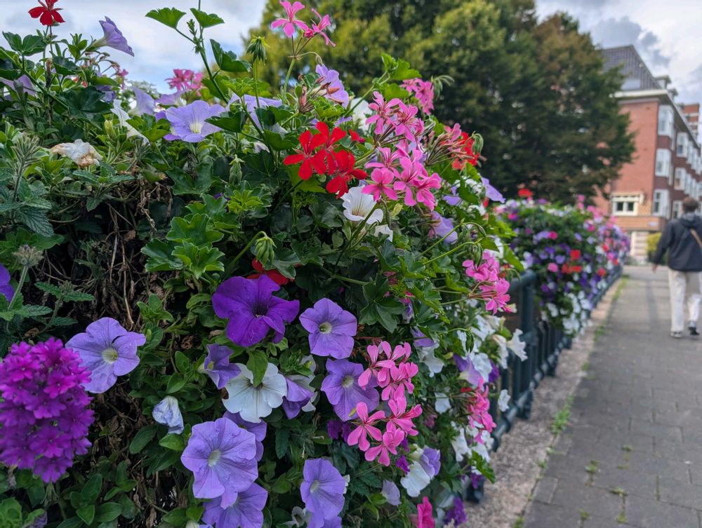 3枚目:欄干のプランターからは延びてお花が枝垂れてます