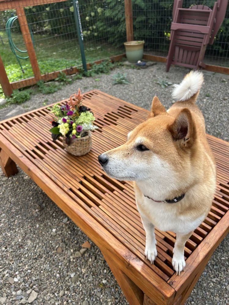 豪華な盛りっと生花でサスケ君も満足そうですね。