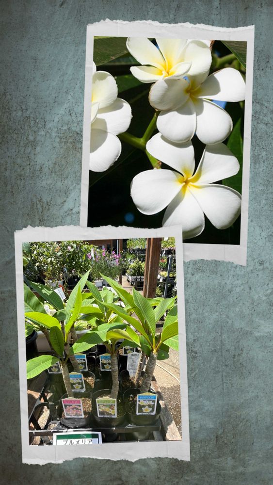 1枚目のプルメリアは今年6月頃、ホームセンターカンセキのお花売り場コーナーで撮影しました😆👍🌿🌸🌸 因みにプルメリアのお花はGoogleサイトからです😆👍 一緒にコラージュにしました😆👍✨🌸🌸🤍🤍💚💚