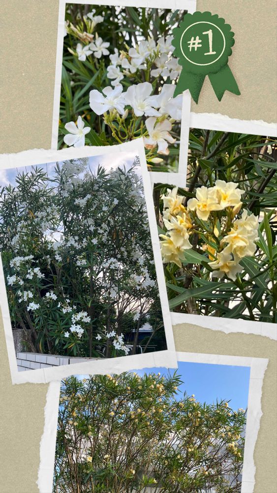 2枚目は、今年6月にいつもの散歩道で撮影した、黄色の八重咲きのキョウチクトウと一重咲きの白色のキョウチクトウです😆👍🌸🌸🌺🌺 どちらもキョウチクトウ科なので今日は、プルメリアとキョウチクトウを一緒に投稿しますね😆👍✨✨