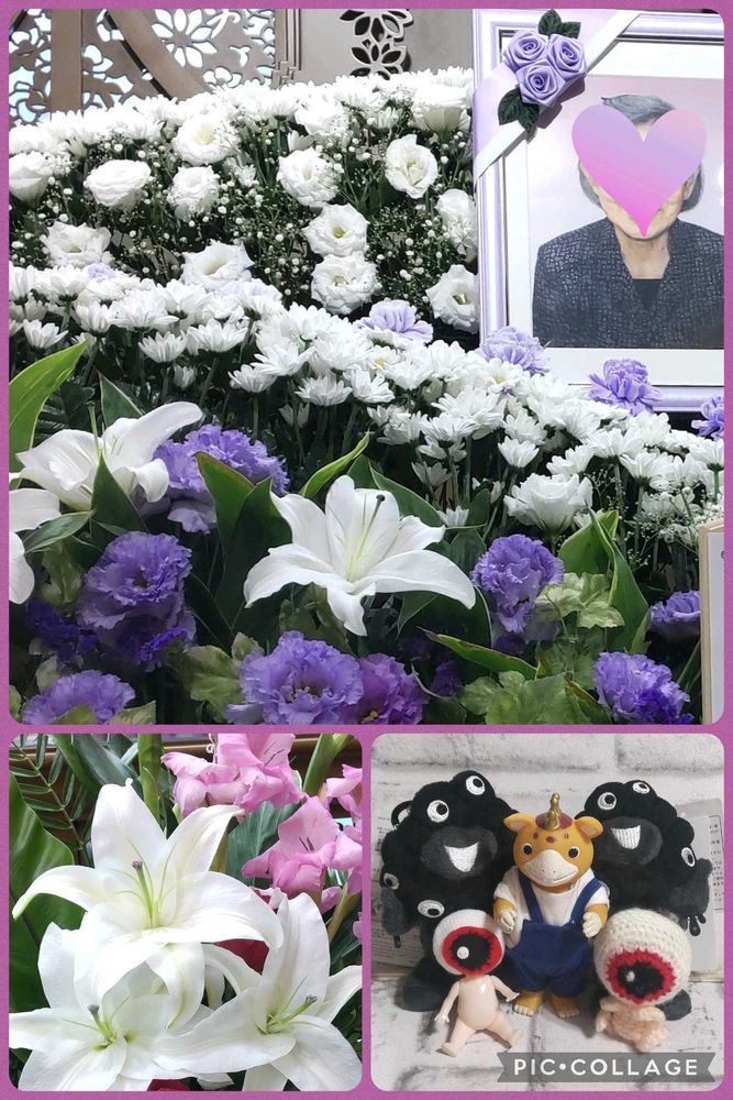 1枚目は、先日亡くなった義母の祭壇。好きだった紫をメインに、遺影のフレームも優しい紫に💜