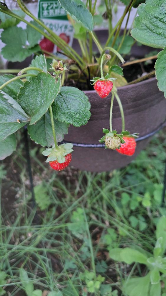 我が家のイチゴ、放ったらかしなのです。今年、お花が咲いて実がなるかな?と思ったら枯れてしまったりでした。実がなって羨ましいです。