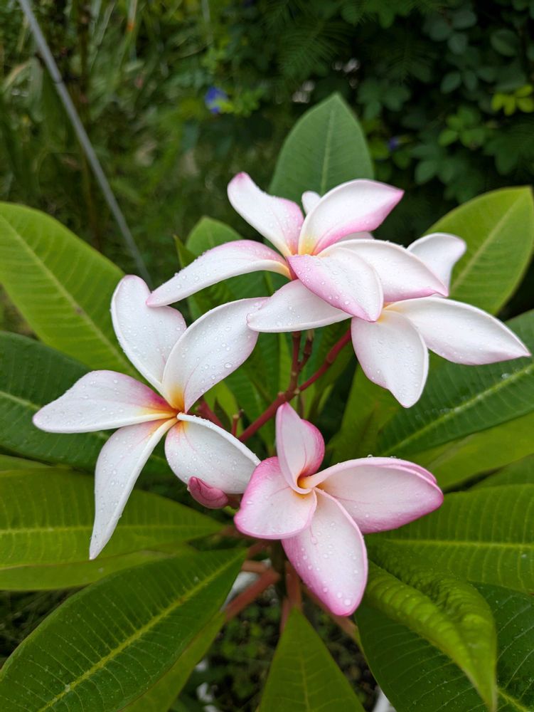 プルメリア 同時に4輪咲きました。