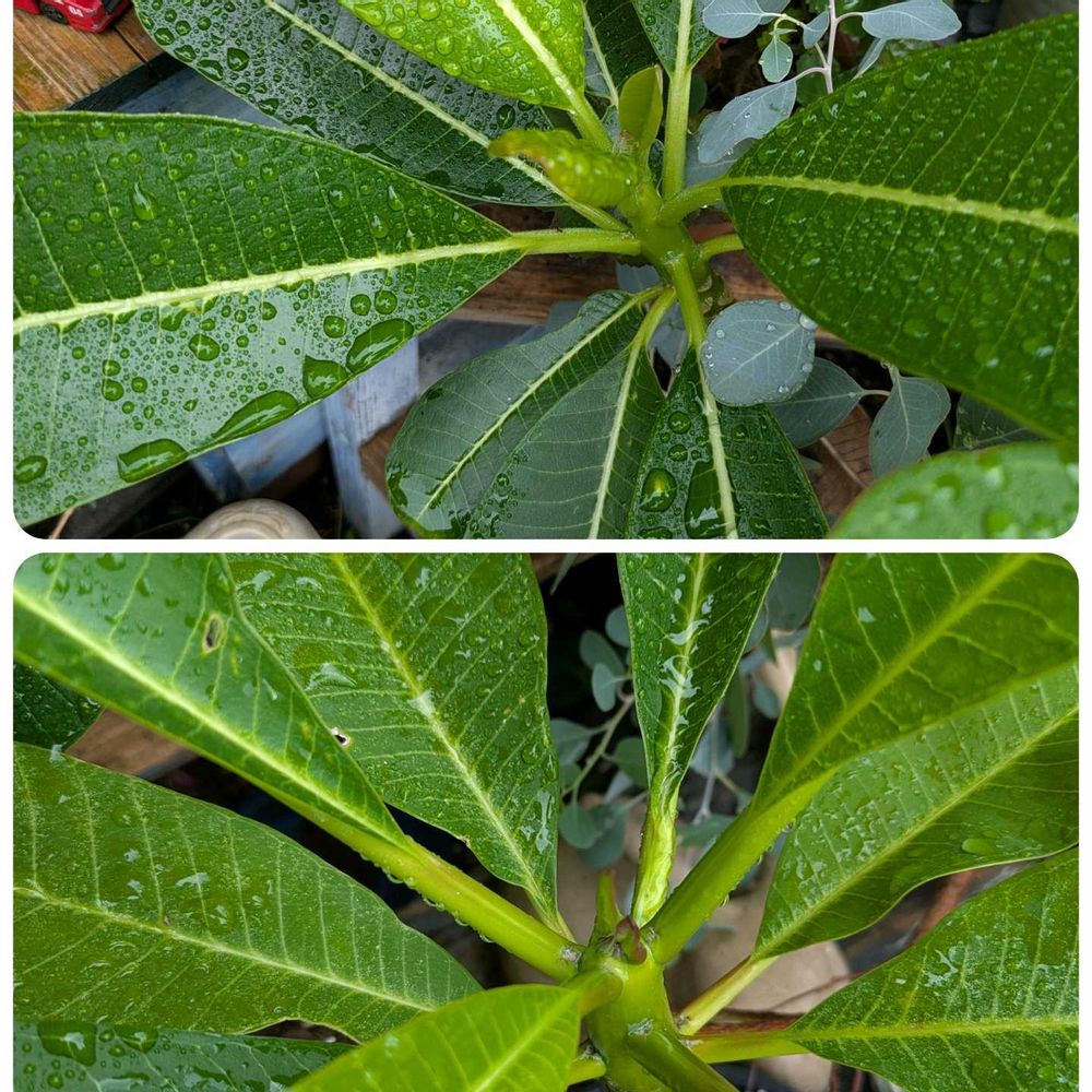 今日のお花、プルメリアは、ぐんぐん育ってるけど年内には咲かないかな。