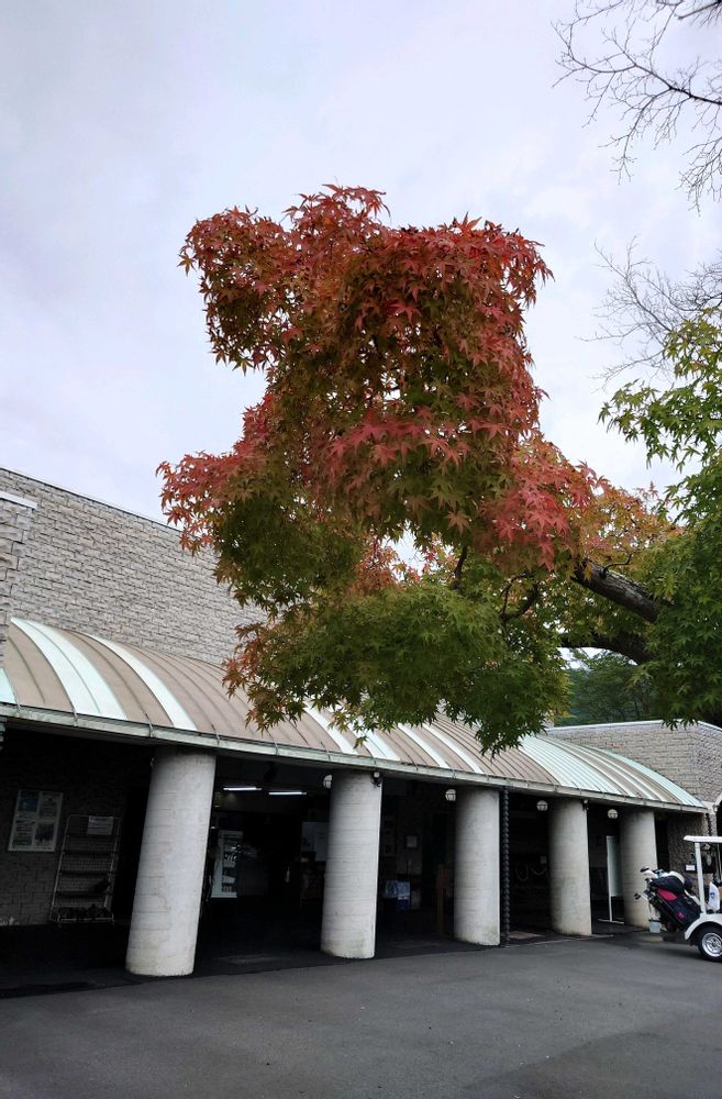 クラブハウス前のモミジは色づいていました🍁
