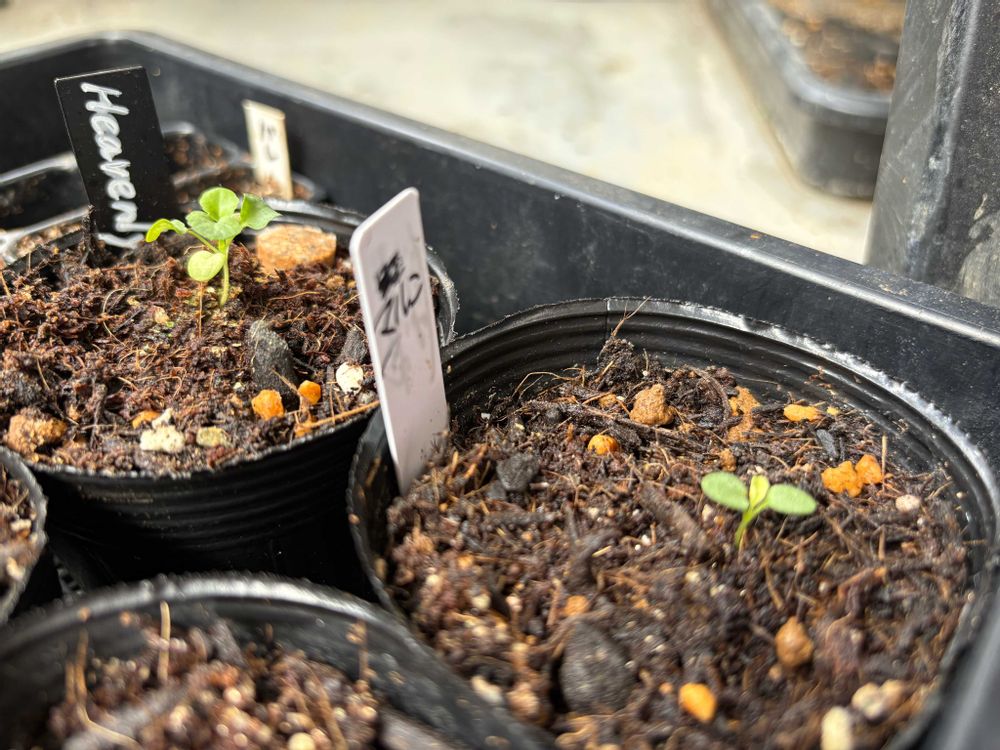 ビオラ。初期にまいた種はほとんど全滅。第二段もあやしい。ポットにうつした小さな双葉は、猫にひっくり返された瀕死の状態。はたして復活出来るのだろうか。