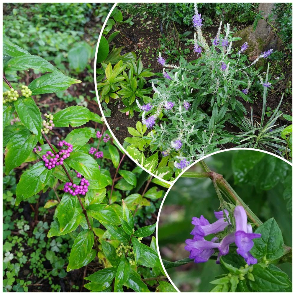 ムラサキシキブ、トウテイラン、そして咲き出してきたカメバヒキオコシ💓