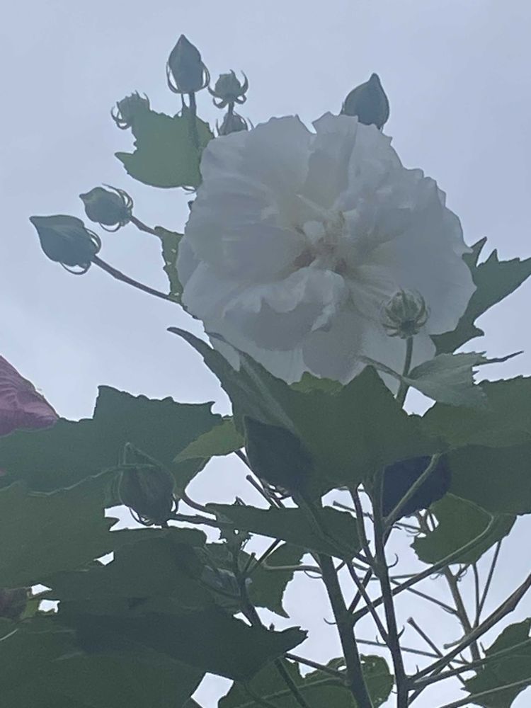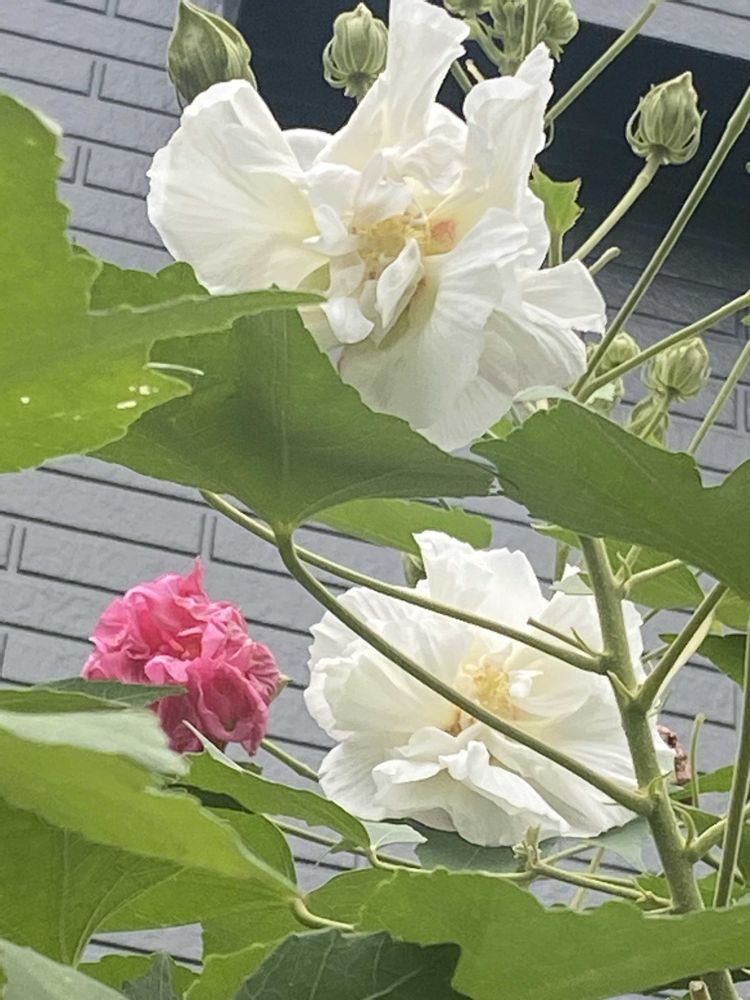 白いお花が今朝咲いたばかりのフヨウですねー♪