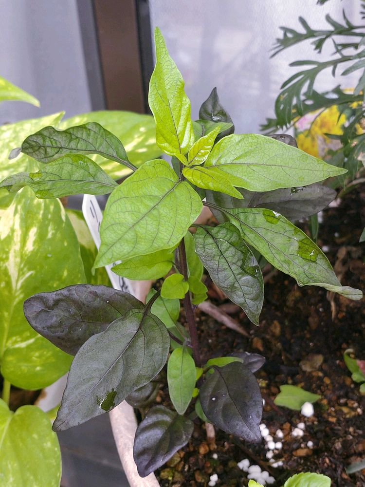 だいぶ前に寒さでいなくなっていたトウガラシ!寄植えからでてきていました!葉っぱの色がきれいだったので、抜かずに置いてた鑑賞用トウガラシ!これもヤッター